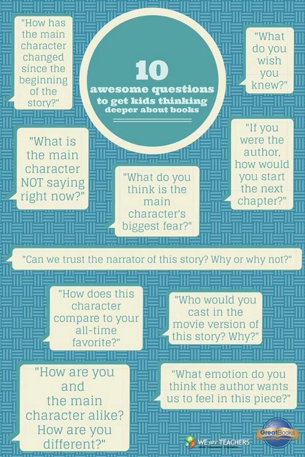 What do you need to drive a great discussion; to get your students to think more deeply about books? I believe the key to deeper thinking about books lies in the questions asked while discussing each book. I discovered this resource on twitter and could not resist sharing it with all of you. Check out more great resources @WeAreTeachers. tlb
