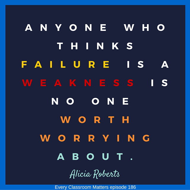 I discovered this great photo today while reading blogger Vicki Davis’ Every Classroom Matters series @ www.coolcatteacher.com. This simple reminder that failure is not a weakness resonated with me and I hope it resonates with other educators. It is essential that we help students, of all ages, understand failure comes with every success because I believe without failure we accomplish nothing. tlb
